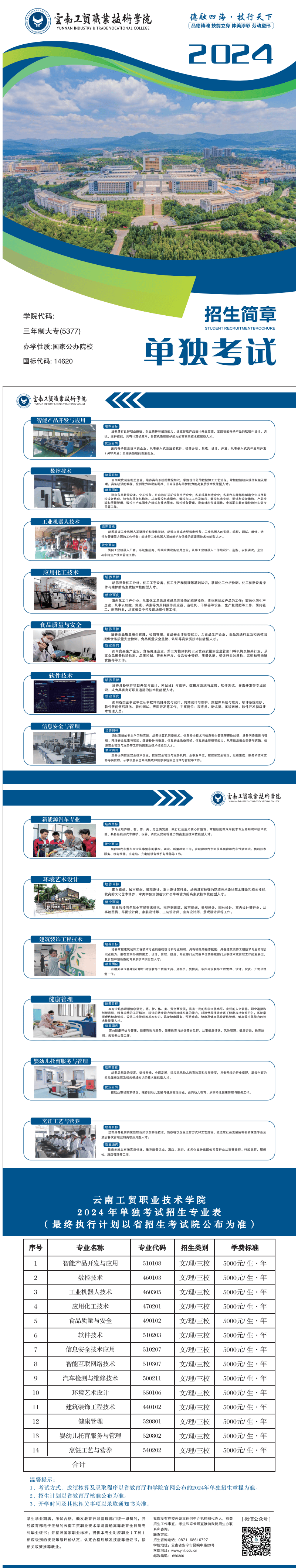 云南工贸职业技术学院2024年单招招生简章